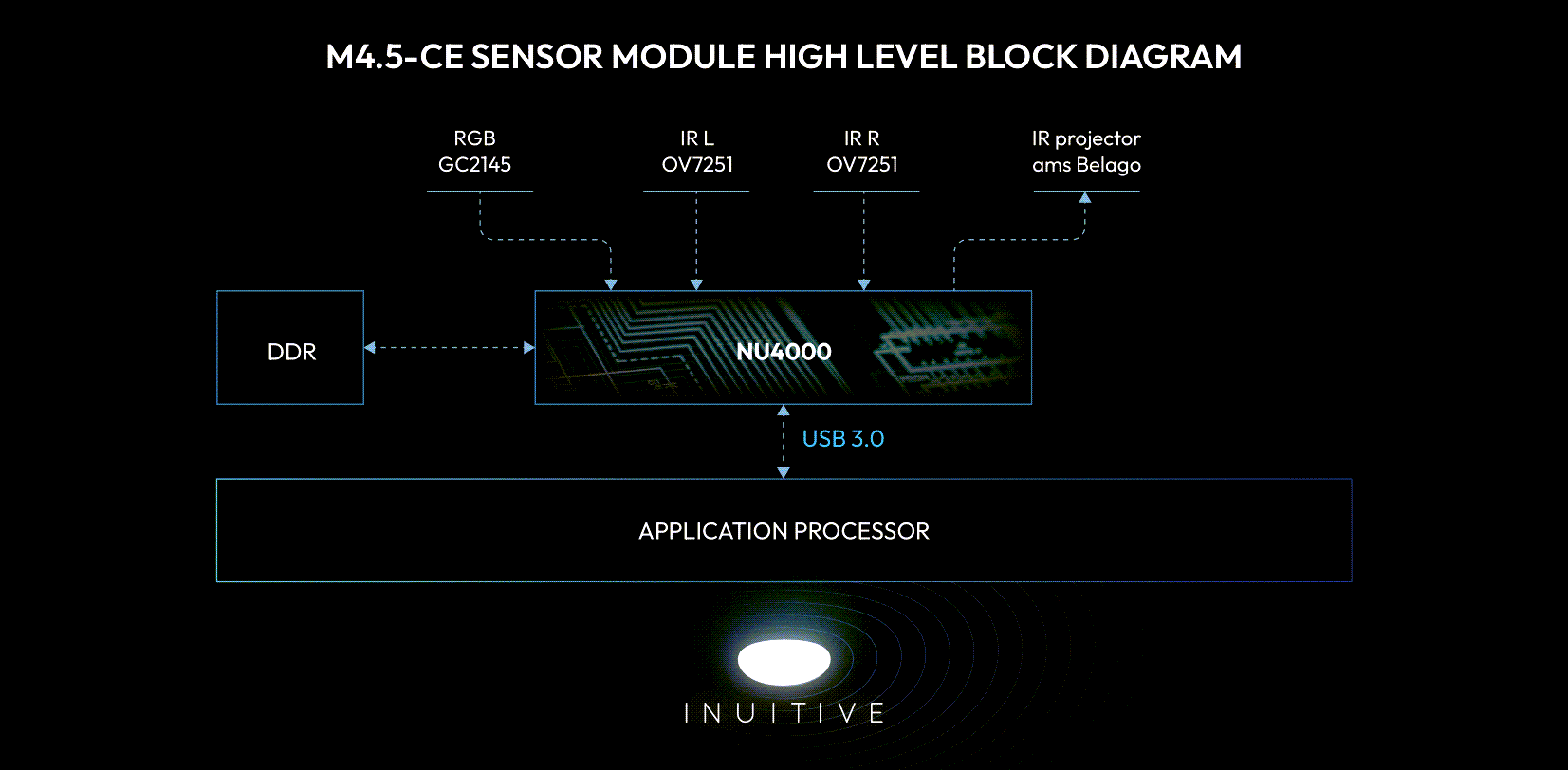 Designed to easily integrate into smart retail and autonomous shopping systems, Inuitive’s M4.5-CE sensor module is built around the NU4000 Vision-on-Chip (VoC) processor and integrates depth sensing and image processing with AI capabilities.
